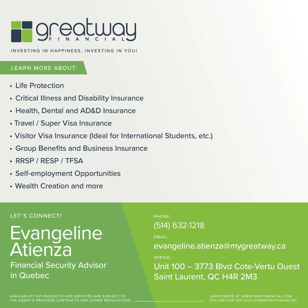 Hi, I am Evangeline, a lifelong learner and your licensed financial security advisor in Quebec and licensed life & health insurance agent in Ontario, Canada!